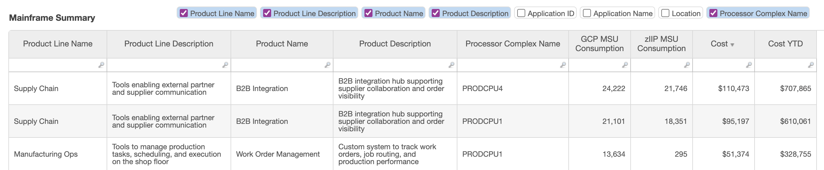 Get a full view of mainframe TCO with cost per MSU, GCP/zIIP usage, and spend by application or workload to support accurate allocation and reporting.